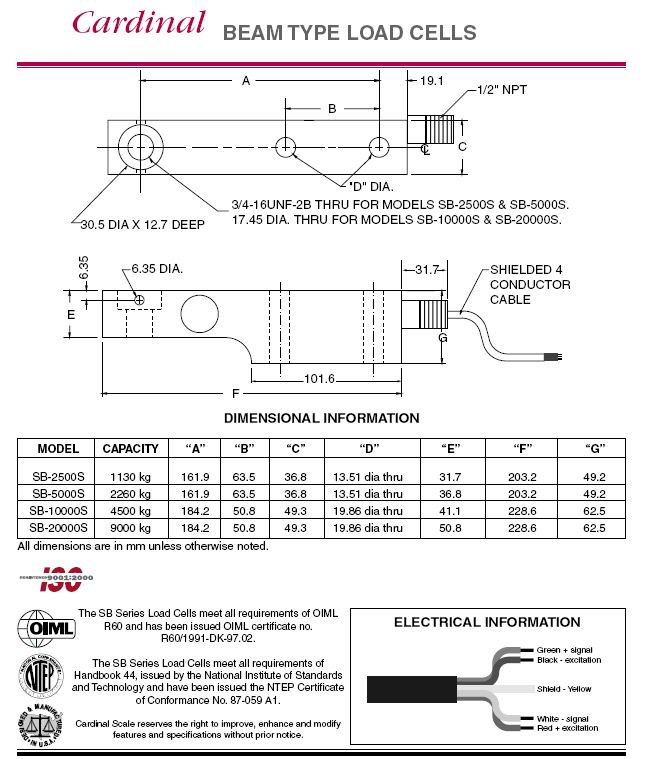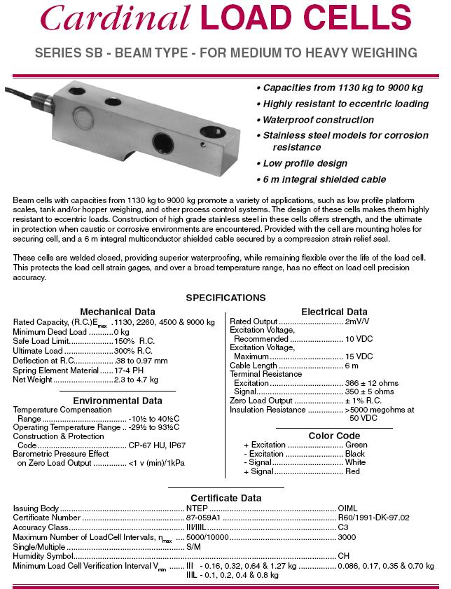 Cardinal SB 稱(chēng)重傳感器(load cells) 所有型號(hào):