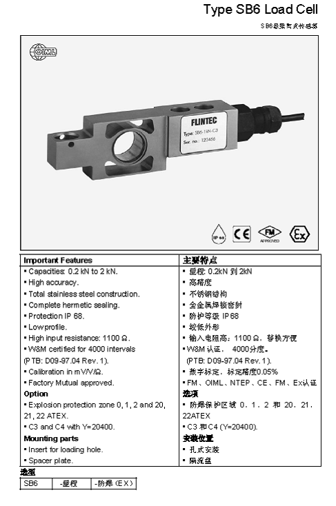 FLINTEC SB6 懸臂梁式稱重傳感器(load cells)