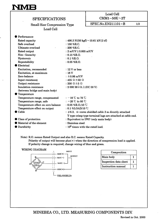 | 產(chǎn)品名稱:CMM1 NMB稱重傳感器(load cells) |