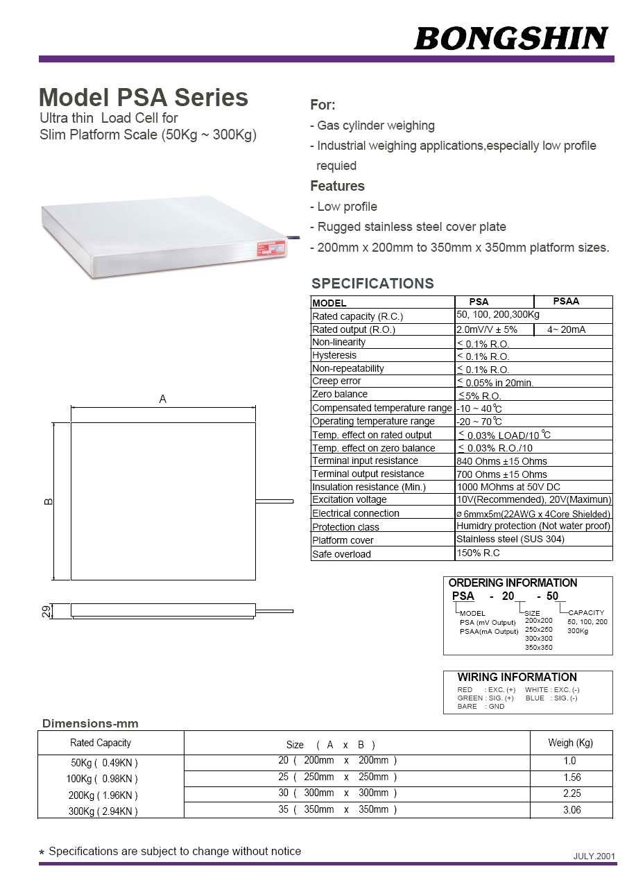 PSA 稱重傳感器(load cell)