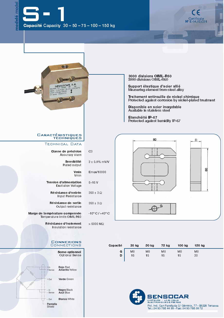 | 產(chǎn)品名稱:Sensocar S-1 S型稱重傳感器(load cells) |