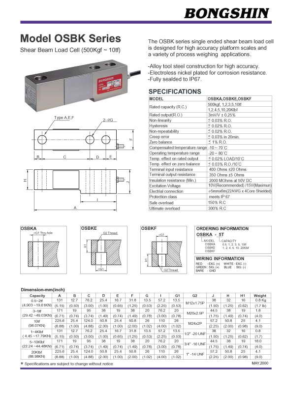 OSBK 懸臂梁稱重傳感器(load cell)