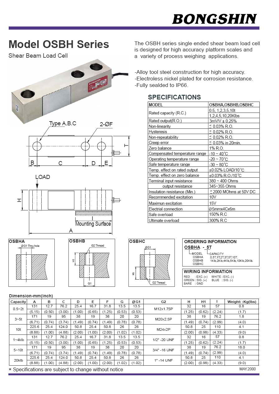 OSBH 懸臂梁稱重傳感器(load cell)