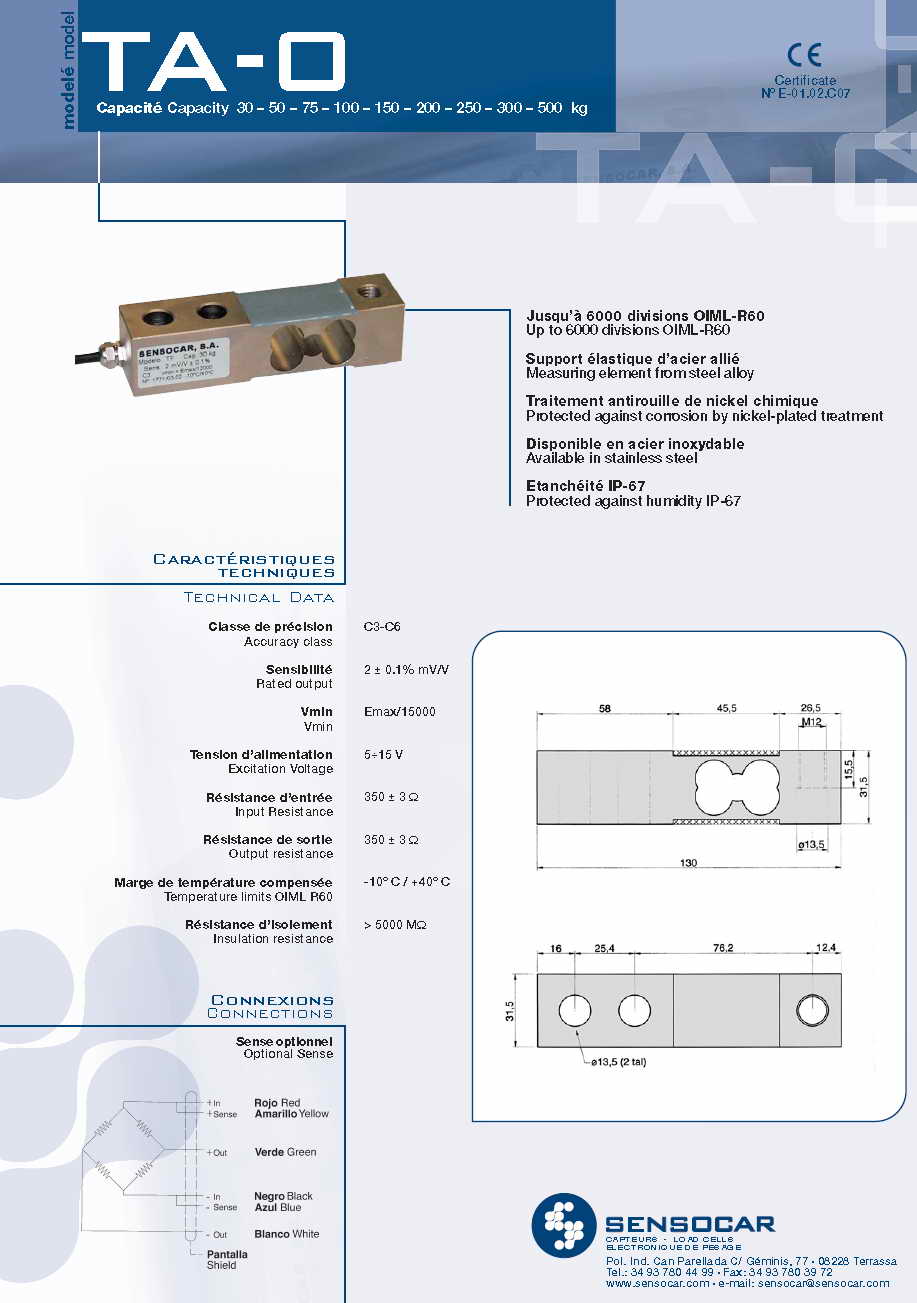 Sensocar TA-0 懸臂梁式稱重傳感器(load cells)