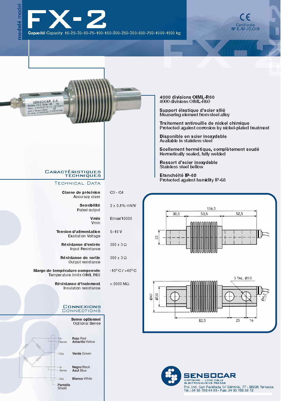 | 產品名稱:Sensocar FX-2 波紋管稱重傳感器(load cells) |