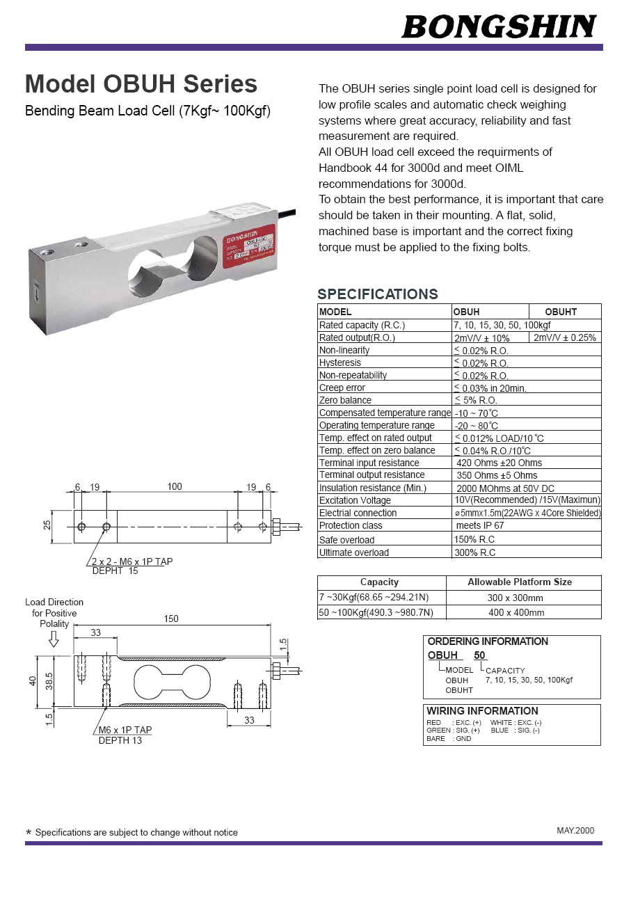 | 產品名稱:OBUH 懸臂梁稱重傳感器(load cell) |