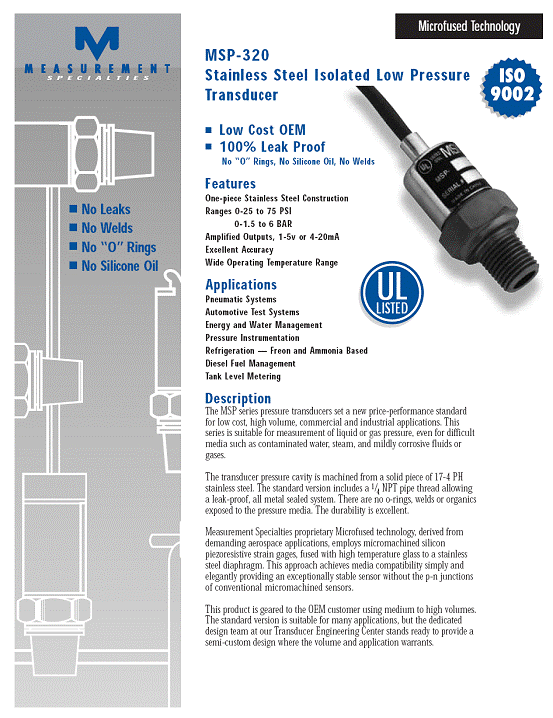 MSP-320 壓力傳感器 (pressure transducer)