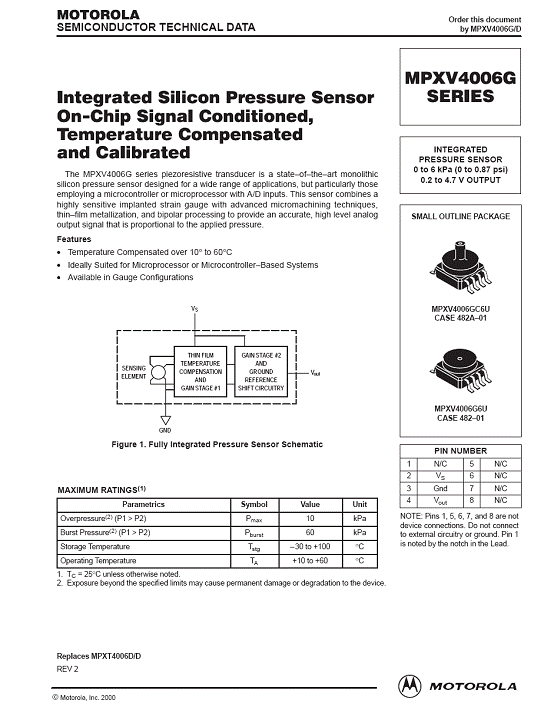MPXV4006G 氣壓傳感器(sensor)