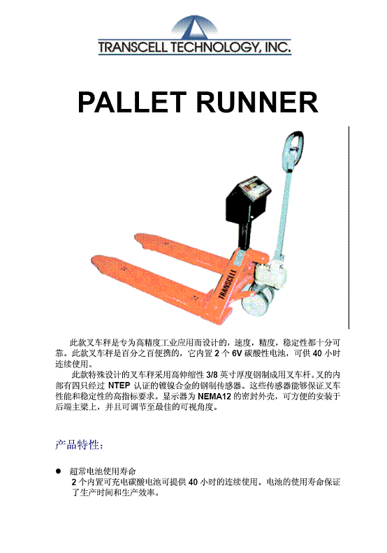 Transcell PALLET RUNNER 叉車(chē)秤(scales)