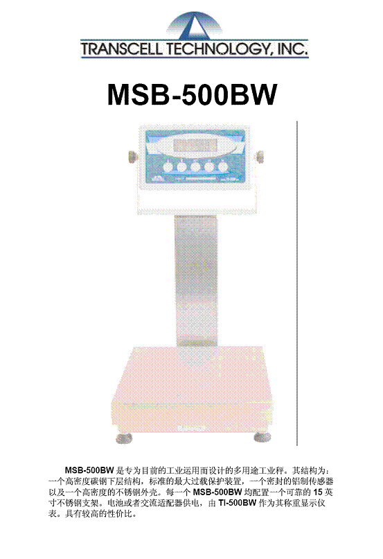 | 產品名稱:Transcell MSB-500BW 工業(yè)秤(scales) |