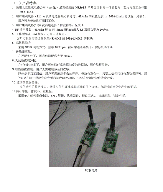 RF 無(wú)線數(shù)據(jù)傳送模塊使用說(shuō)明(PCB module)
