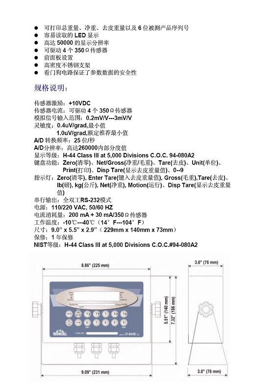 Transcell T1-600ESS 化工稱重顯示儀表(Indicator)