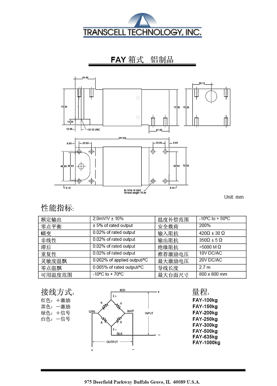 Transcell FAY 箱式稱重傳感器(load cells)