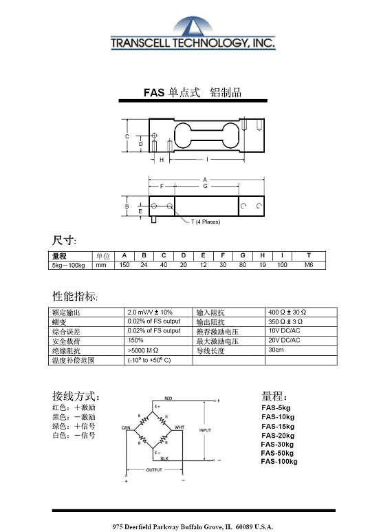 | 產(chǎn)品名稱:Transcell FAS 單點式稱重傳感器(load cells) |