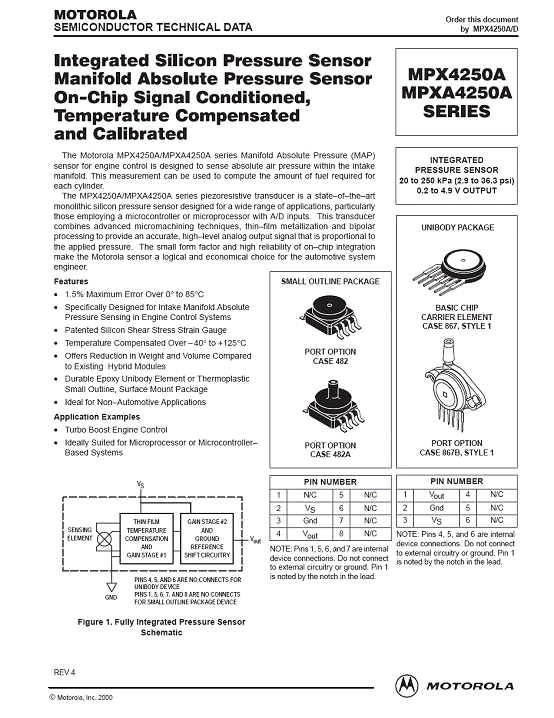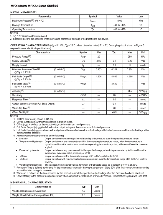 | 產(chǎn)品名稱:MPX4250A 氣壓傳感器(sensor) |