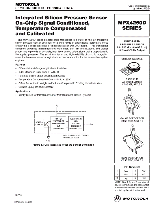 MPX4250D 氣壓傳感器(sensor)
