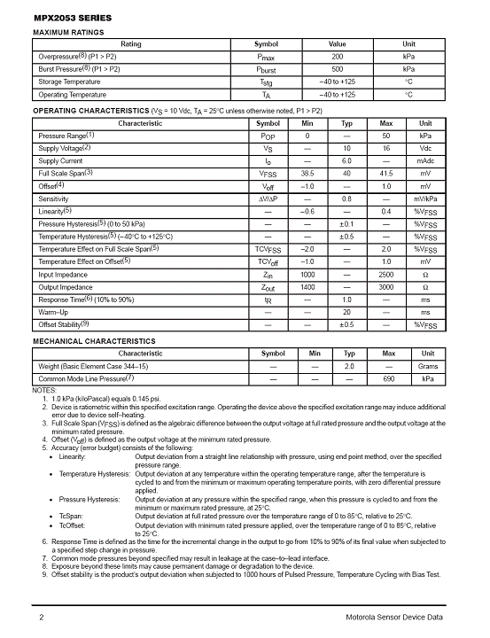 MPX2053 氣壓傳感器(sensor)