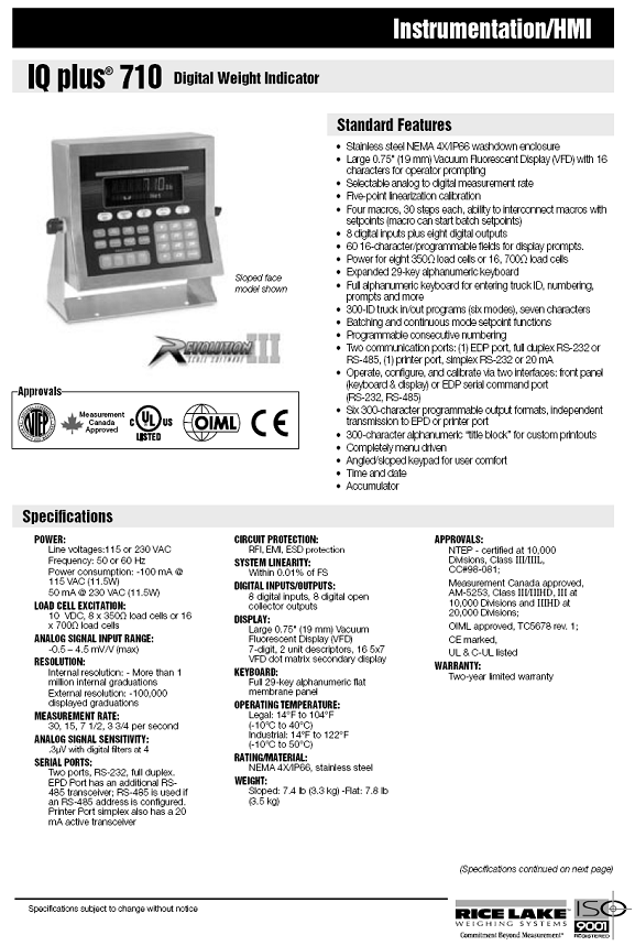 IQ Plus 710 稱重顯示儀表(indicator)