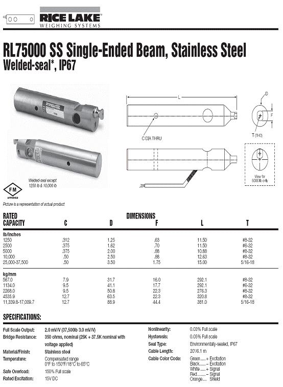 產(chǎn)品名稱:RL75000 SS 懸臂梁稱重傳感器(load cells)